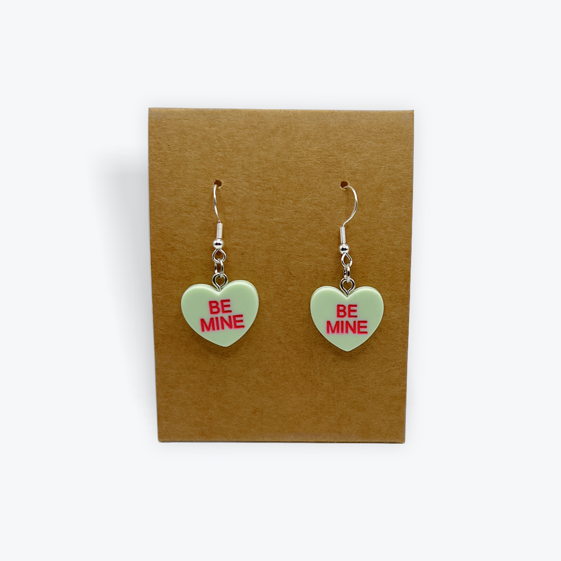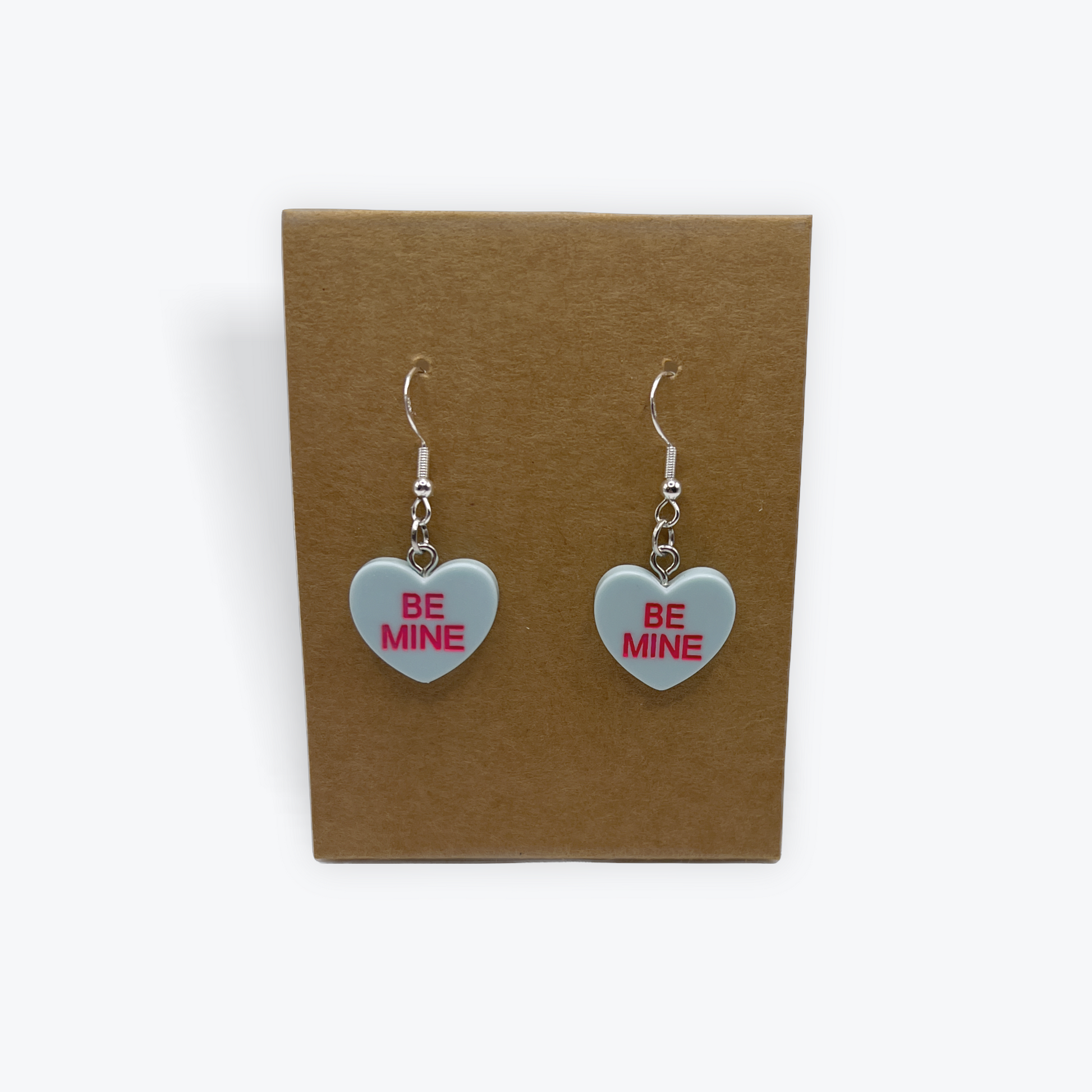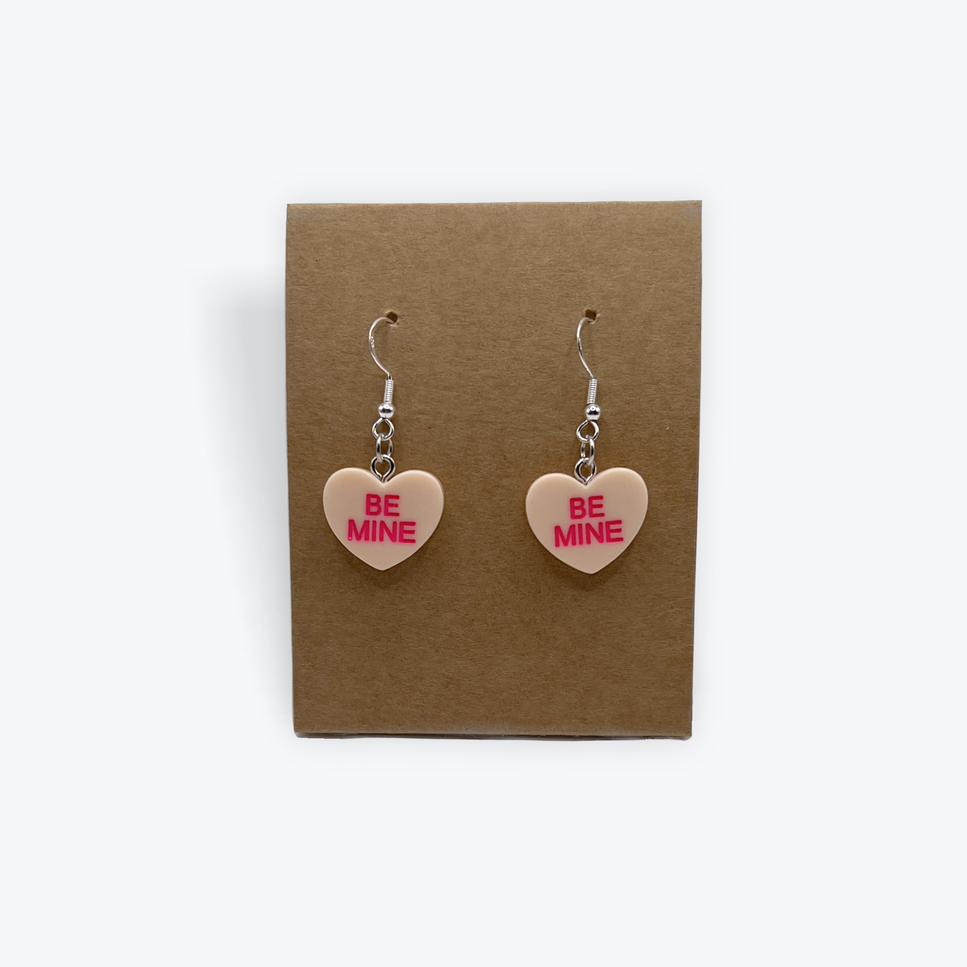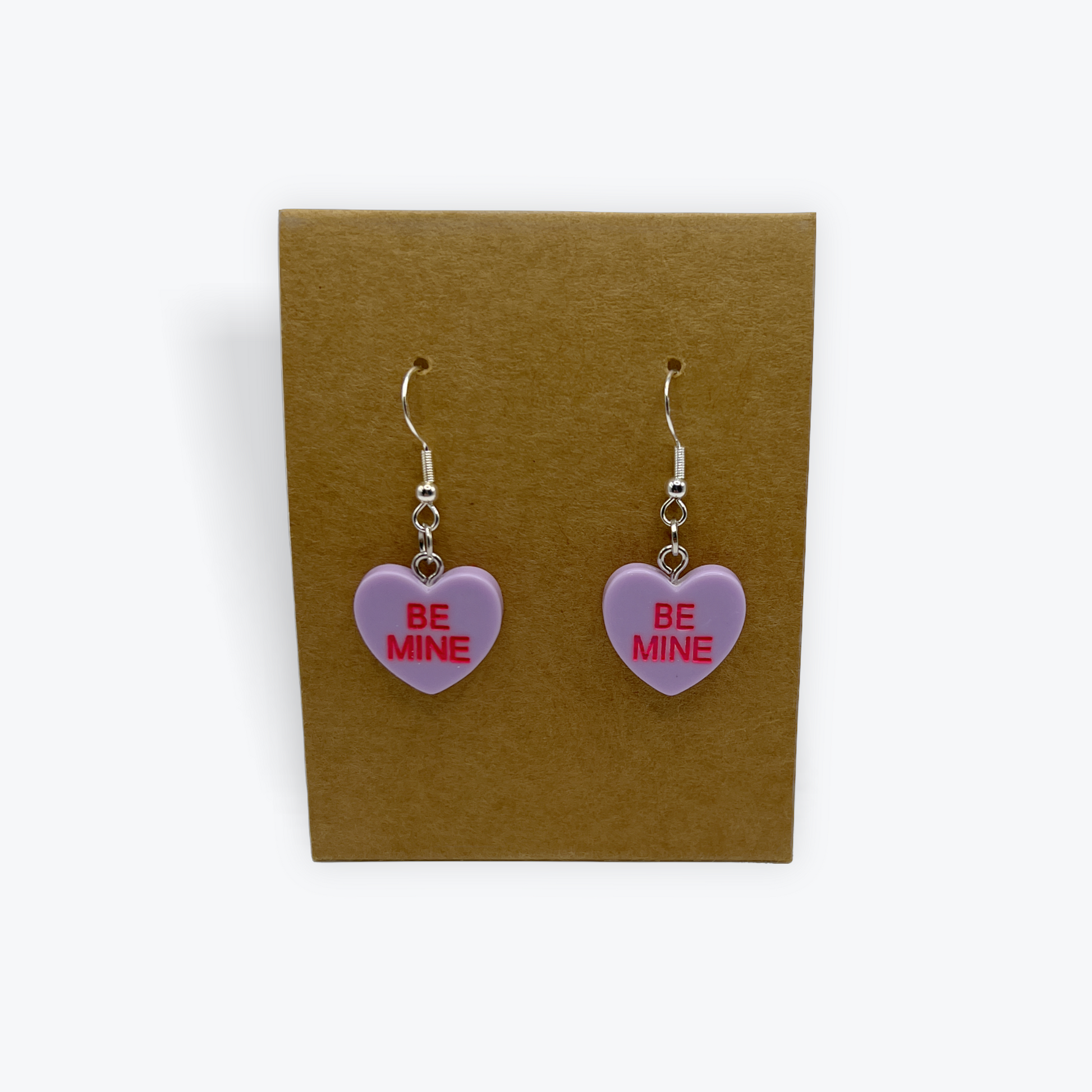 Handmade be mine candy heart earrings on hypoallergenic hooks